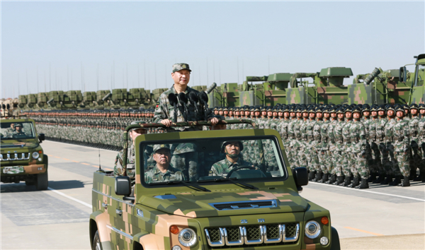 習近平指,安享和平是人民之福,保衛和平是人民軍隊之責。天下并不太平,和平需要保衛。今天,我們比歷史上任何時期都更接近中華民族偉大復興的目標,比歷史上任何時期都更需要建設一支強大的人民軍隊。要深入貫徹黨的強軍思想,堅定不移走中國特色強軍之路,努力實現黨在新形勢下的強軍目標,把英雄的人民軍隊建設成為世界一流軍隊。