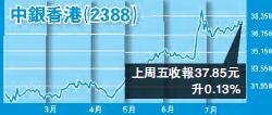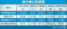該行料,中銀香港已開始其盈利上升周期,估計其8月底公布中期業績可望改善,料淨息差可按半年擴闊,估計其貸款按年增長逾10%以上,料手續費收益及控制成本良好,可推動中銀香港中期營運溢利按年升25%水平以上,市場或會上調對其每股盈利預測。大摩指,中銀香港現股價僅相當預測明年市盈率11倍、市帳率1.5倍,屬吸引水平。