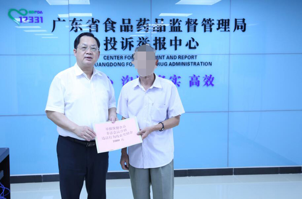 【香港商报网讯】记者李苑立报道:记者从广东省食安办、省食品药品监管局获悉,7月中旬“南粤护老”专项整治保健品违法行动开展以来,短短10天就收到30多起举报,首批提供线索的举报人,已经按规定获得现金奖励。