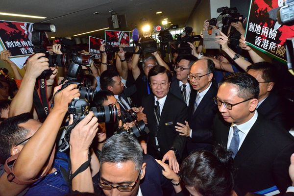 正在放暑假的立法會內務委員會昨日下午舉行特別會議,討論廣深港高鐵香港段「一地兩檢」安排。由律政司司長袁國強、運輸及房屋局局長陳帆、保安局局長李家超解釋及回應議員的提問。
