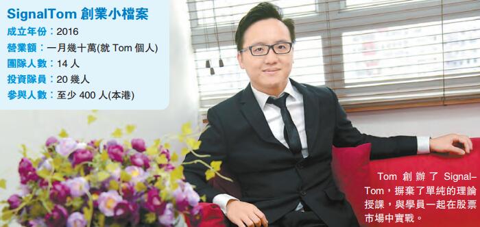 投資教練與企業教練是Tom的職銜。早在4年前,Tom已經開始教人投資,后來沒有再教,緣於他認為授課后,學員應能學以致用,不然就與現時外面的投資課堂一樣,導師頭銜雖然厲害,但上課后就會甩手走人。