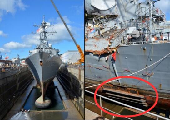 除了連續兩起的士兵“失蹤”,美軍還被曝光在6月中旬發生過一次“相撞”事件。6月17日,在橫須賀港西南方向56海里(103公里)處海域,裝備精良的美國海軍驅逐艦“菲茨杰拉德”號撞上了一艘菲律賓商船,導致美國軍艦船體嚴重受損,7名美軍死亡。當時天氣情況良好,能見度高。