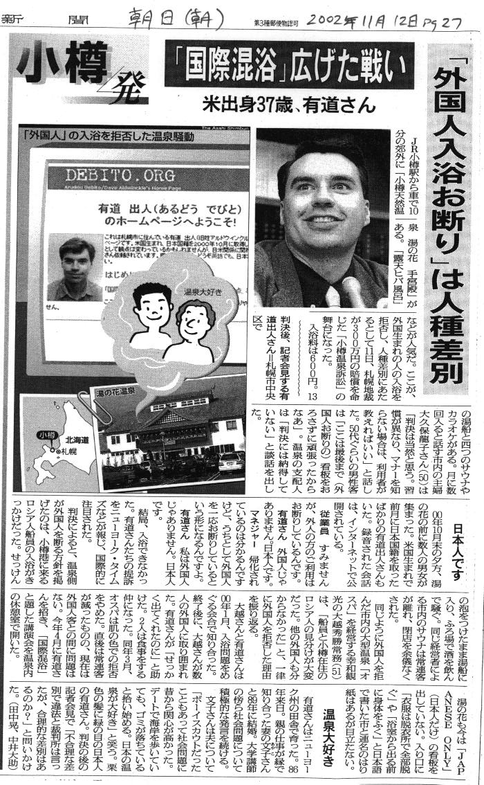 2002年,美裔日本人有道出人狀告北海道小樽市一案轟動一時。