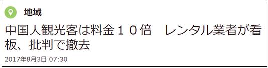 涉嫌國別歧視的廣告牌注明:中國人租賃需要20000日元(約合人民幣1210元)