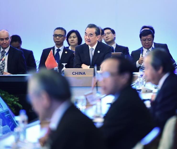 8月7日,中國外交部長王毅出席在菲律賓馬尼拉舉行的第七屆東亞峰會外長會。針對個別國家外長發言中涉南海問題的不實言論,王毅闡述了中方的原則立場。新華社發(王申 攝)