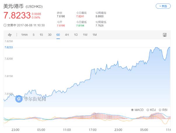 港元今日盤中走跌,穿破心理點位7.82,進入“危險區域”。