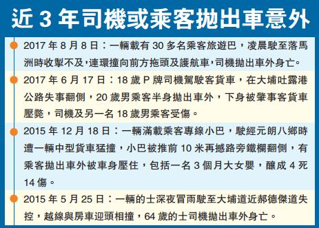 近3年司機或乘客拋出車意外