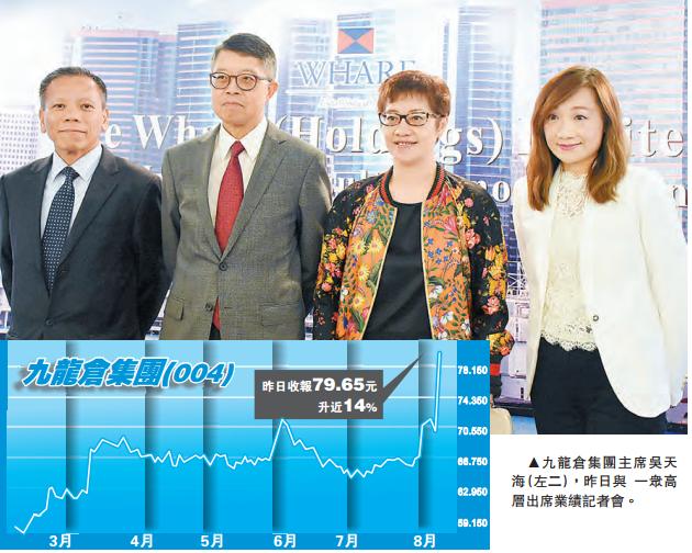 【香港商報网訊】實習記者李卓成報道:九龍倉集團(004)昨公布中期業績,上半年基礎盈利按年增22%至72億港元,并公布分拆其全資附屬公司九龍倉置業地產投資於主板上市,涉及值2300億地產項目。受此消息刺激,九倉股價午后曾高見80.15元,升幅逾14%,破歷史高位。