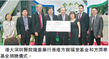今年適逢港大深圳醫院五周年誌慶,8月9日該院隆重舉行五周年展覽揭幕儀式暨香港方樹福堂基金和方潤華基金捐贈儀式,深圳市副市長、港大深圳醫院董事長吳以環及香港大學校長馬斐森教授等嘉賓出席了捐贈儀式,全國政協委員、協成行董事總經理方文雄代表方樹福堂基金、方潤華基金接受吳以環副市長贈送紀念牌匾。