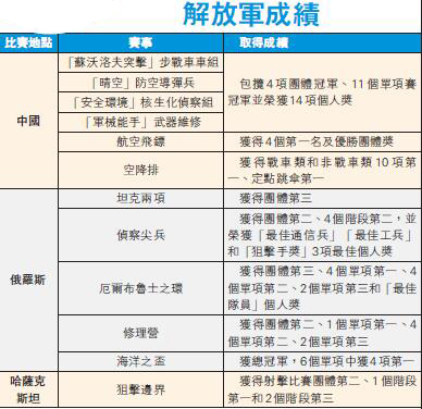 今年中國陸軍還派出5支代表隊赴境外參加這一比賽的其他9項賽事,包括赴俄羅斯參加「坦克兩項」坦克車組比賽、「偵察尖兵」偵察班組比賽、「厄爾布魯士之環」山地步兵分隊比賽、「修理營」坦克修理比賽、「海洋之環」艦艇比賽、「海上登陸」陸戰隊比賽、「天空之鑰」地空導彈分隊比賽;赴哈薩克斯坦參加「狙擊邊界」狙擊手比賽和「無人機班組賽」。