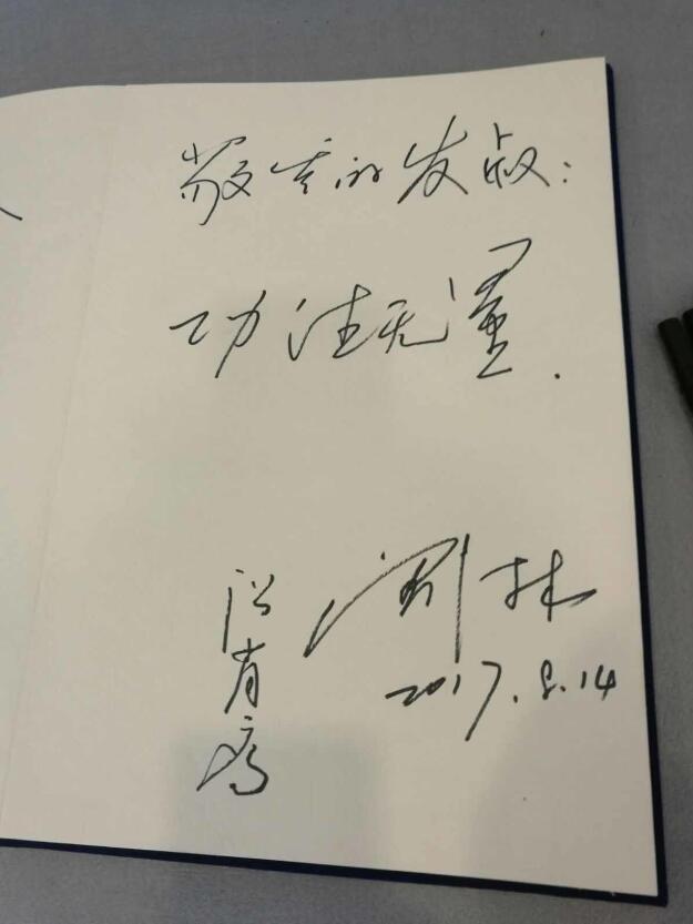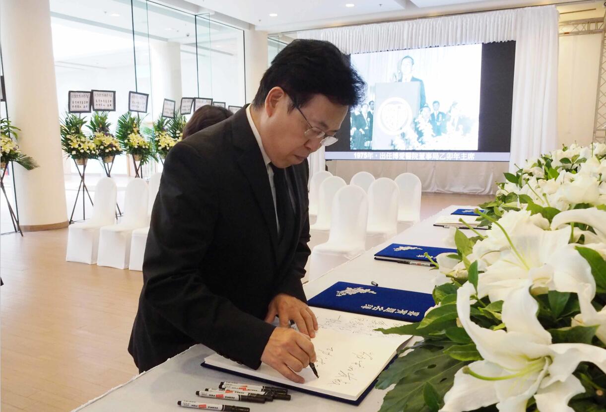 劉林於弔唁冊署名并寫上:「敬愛的發叔:功德無量。」(下图)致意。