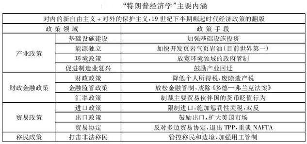 (三)以保護國內市場、擴大對外出口為核心的貿易政策。特朗普對國際貿易持強硬態度,其目的是促使本國制造業能夠在國際競爭中占據有利地位。特朗普的外貿政策主張包括:
