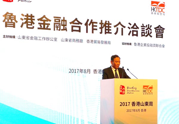 【香港商報網訊】記者劉佳報道:2017香港山東周「魯港金融合作推介洽談會」昨日下午在香港會展中心舉行。山東省金融工作辦公室主任李永健表示,期待與香港金融業在新舊動能轉換、資本市場和金融機構等領域有更深入的合作。