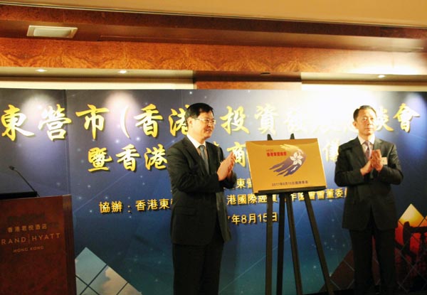 【香港商報網訊】記者胡榮國、齊薇然報道:山東省東營市在香港君悅酒店舉行東營(香港)投資發展懇談會暨香港東營商會揭牌儀式,魯港雙方就多方面加強合作進行了良好交流洽談。東營市委副書記、市長趙豪志,東營市委常委、統戰部長聶建軍,為香港東營商會正式揭牌。
