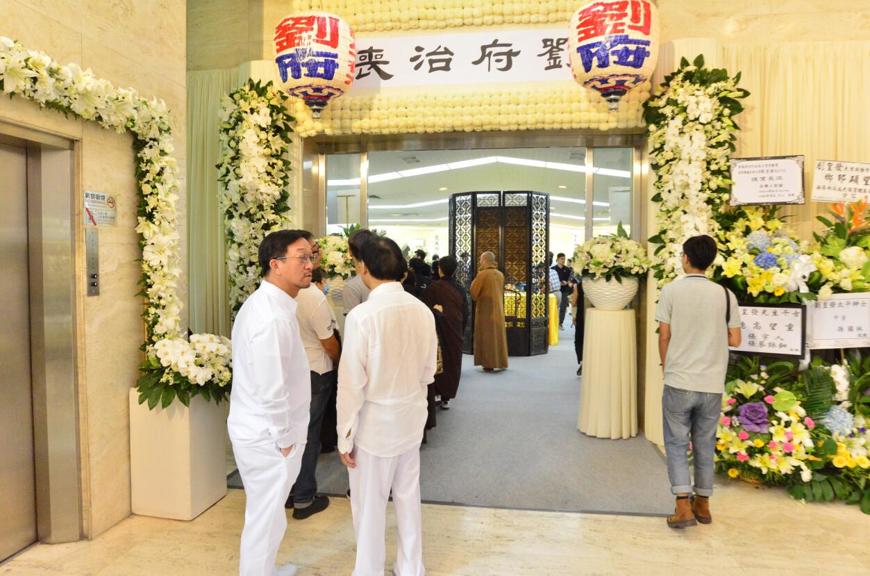 靈堂法事於昨午4時許開始,發叔遺孀、長子劉業強、3名女兒及劉家子孫,均穿上素服在法師引領下完成法事。期間各界人士陸續到達靈堂致祭,有多位是城中政商名人。昨日,鄉議局副主席張學明及林偉強、27鄉委會主席及鄉局全體議員均出動接待來賓。