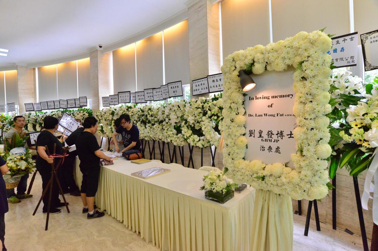 發叔設靈於北角香港殯儀館,於昨日下午5時開始供各界人士弔祭。靈堂布置以白色為主調,白色鮮花簇擁着中央的發叔遺照,上方橫匾寫上「德高望重」,兩側挂了「全忠全心全孝義,愛國愛港愛家鄉」的輓聯。