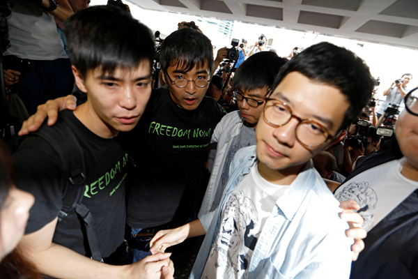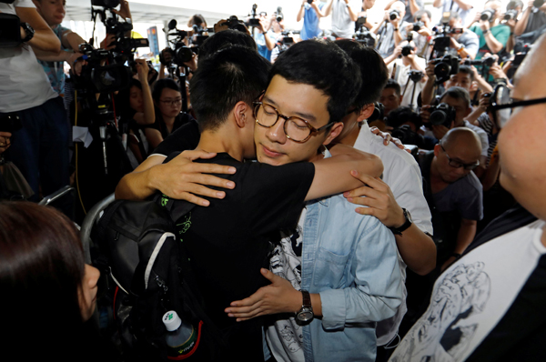 羅冠聰聽取宣判前與同伴相擁。圖:路透社