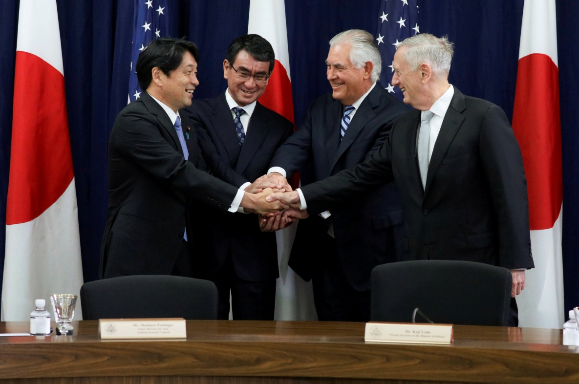 當天上午,美國務卿蒂勒森、國防部長馬蒂斯同日本外務大臣河野太郎、防衛大臣小野寺五典在美國務院舉行會談。會談結束後,兩國發表聯合聲明。