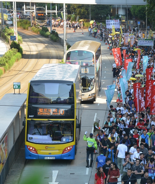 昨午3時許,遊行隊伍於灣仔修頓球場起行,警方原本只開放一條行車線,大會與警方交涉後,警方加開一條行車線疏導遊行隊伍,其後再陸續封閉莊士敦道西行介乎修頓球場至警察總部之間的3條行車線。在警方開放3條行車線之前,於軒尼詩道與莊士敦道交界往中環方向的行車線,因有遊行人士行出沒有被封閉的道路,一度有多輛巴士及電車被迫停駛。有前往元朗的巴士乘客表示不滿,令行程受阻,又說在車上等了接近1小時,他最後決定下車離開;另有沿路商戶表示,因門外有大批人士聚集而影響做生意。