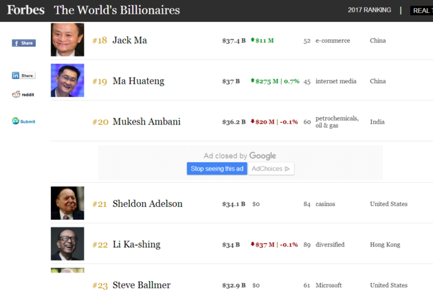 目前馬雲在全球富豪排行榜上名列第18位,在亞洲排名第一位。馬化騰則列全球富豪榜第19位,在亞洲排名第二。