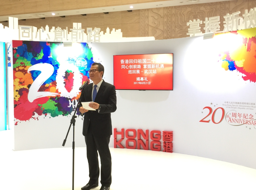陳茂波訪武漢於巡迴展揭幕禮上致辭。