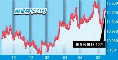 另外,產品組合亦見改善,加上客戶需求抵銷了重大外匯換升影響;每股盈利0.07元;期內營業額19.74億元,按年升2.61%;毛利3.71億元,按年亦升11.09%,就毛利率亦較去年同期上升1.4個百分點至18.8%。耐世特業績后股價見躍升,但今年預測市盈仍只12.04倍,汽車板塊今年勢如破竹,耐世特只要稍整理升幅,略調至12.5元水平已可作吸納,10天及100天均線(約12.1元)更為價值吸納水平。