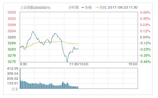 截至午間收盤,滬指跌0.21%報3283.41點,深成指跌0.32%報10620.07點。