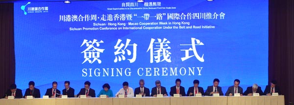 「川港澳合作周·走進香港暨一帶一路國際合作四川推介會」上,隆重舉行簽約儀式。記者馮俊文攝