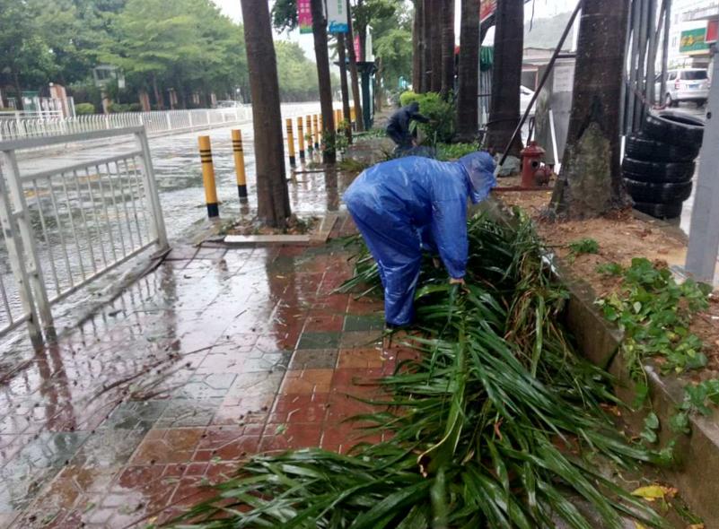 大鹏新区环卫工及时清理台风“天鸽”吹倒的树。(张莉供图)