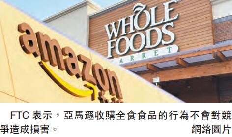 【香港商報网訊】美國聯邦貿易委員會(FTC)23日同意亞馬遜137億美元(約1068億港元),收購主打天然有機食品的全食食品超市,全食食品股東也在同一天為收購開綠燈。