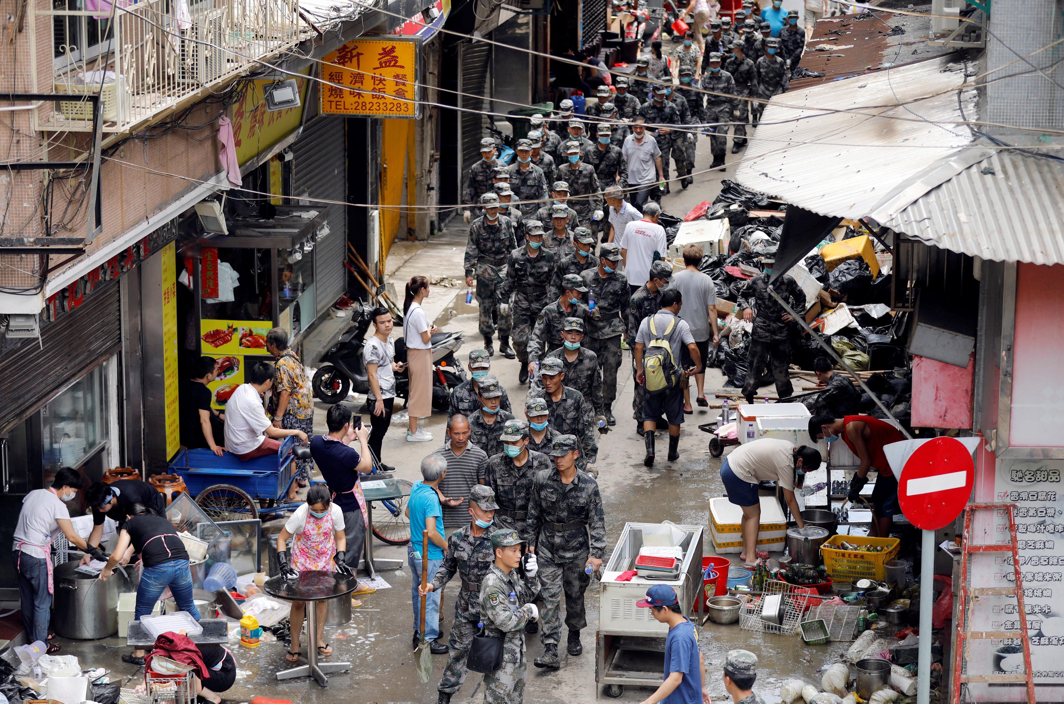 駐澳部隊是次出動1000名左右官兵協助進行災后救助、清除路障和街道垃圾等各項工作。駐澳門部隊的官兵自帶裝備、紀律嚴明,冒着酷暑天氣連續進行清理工作。澳門特區政府和廣大澳門市民對中央政府的關愛和支持,對澳門駐軍的辛勞付出表示衷心感謝和崇高敬意。