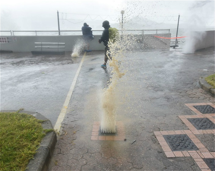 受大骤雨的影响,低洼地区可能出现水浸,海面有非常大浪及涌浪。市民应远离岸边及停止所有水上活动。