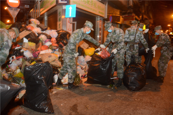 指揮是次行動的駐澳部隊陳大校表示,駐軍人員經過早上的努力,十月初五街主街和內街的垃圾已清理完畢,之后派出30名人員清洗街道和噴灑藥用消毒水,防止蚊蟲孳生。他解釋,由於區內垃圾量非常多,加上道路被雜物堵塞,影響清理進度。