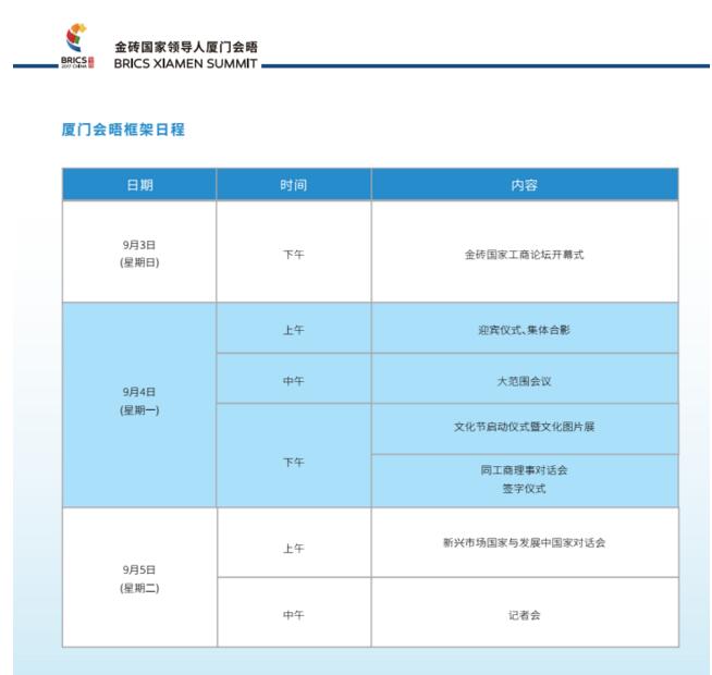 金磚國家領導人第九次會晤將于9月3日-5日在廈門市舉行