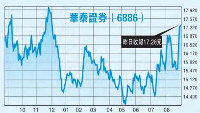 市場靜待結算,預計大市變化不大,個股就較精采。華泰證券(6886)近日股價走勢亮眼,升穿多條移動平均線,今年6月止的上半年業績,收益總計124億元人民幣,按年增加7.2%,純利30億元人民幣,增長5.4%,業績穩步增長。