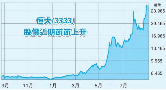 恒大股價昨上漲逾一成,收報25.5元,升幅達11.84%,曾高見25.75元,成交1.61億股,涉資39.47億元。