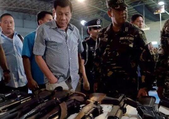 資料圖:杜特爾特在軍營檢查禁毒中收繳的槍支。