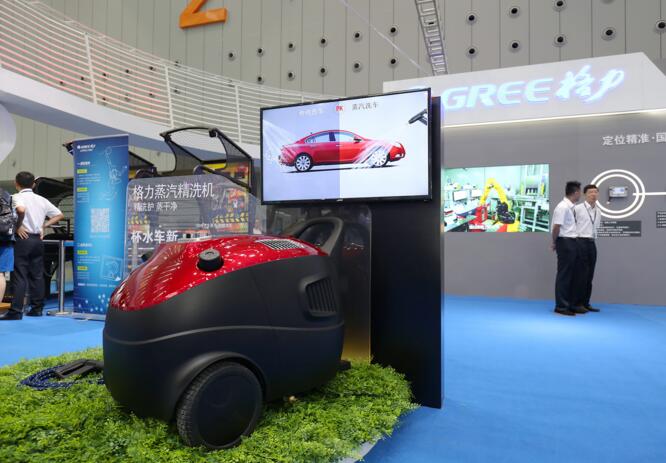 此次珠洽會現場,最有“觀眾緣”的產品莫過于能文能武的格力智能“灌籃”機器人。不少觀眾翹首以待,爭相排隊與它比賽。投籃機器人100%的命中率引得圍觀者贊嘆聲不斷,現場氣氛十分火爆。格力還帶來了讓人眼前一亮的新品——蒸汽洗車機,它通過120℃的蒸汽對車體內外進行全方位清洗,不僅能夠去除污漬,而且還有殺菌消毒的作用。無需任何添加劑,一升水就可洗凈一臺車,為傳統洗車用水量的1%,而且可連續工作20個小時,實力演繹“杯水車新”,賺足眼球。