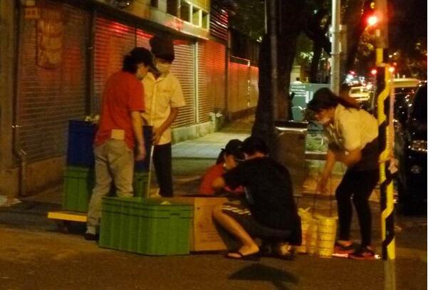 蘇嘉全們的夜宵到了,并在絕食的國民黨人面前卸貨。(圖片來源:台灣《聯合報》)