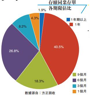 據方正固收統計,存續同業存單中,一年期以上所占比例在各期限中最低,為1.9%,一年期所占比例最高為40.5%。