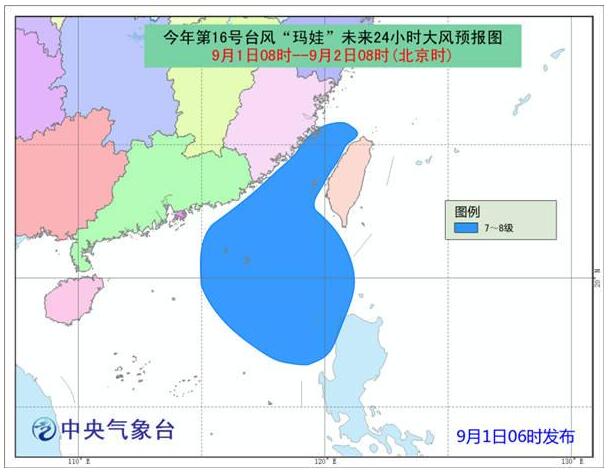 大風預報:1日08時到2日08時,福建中部沿海、台灣海峽、南海中東部和東北部、巴士海峽有7-8級大風,台風中心經過的附近海域風力可達9級,陣風10-11級。
