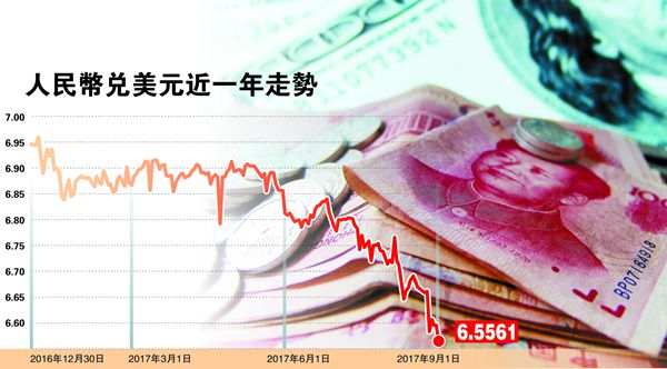 1日23點30分,在岸人民幣兌美元收報6.5596元,較上日夜盤收漲293點,本周漲888點,一周漲幅是8月全月的一半以上。8月累漲1401點,漲幅達2.08%。9月1日全天,在岸人民幣成交量281.26億美元,較上日擴大21.71億美元。