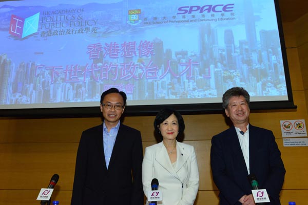 (左起)聶德權、葉劉淑儀及湯家驊出席香港想像下世代的政治人才座談會。