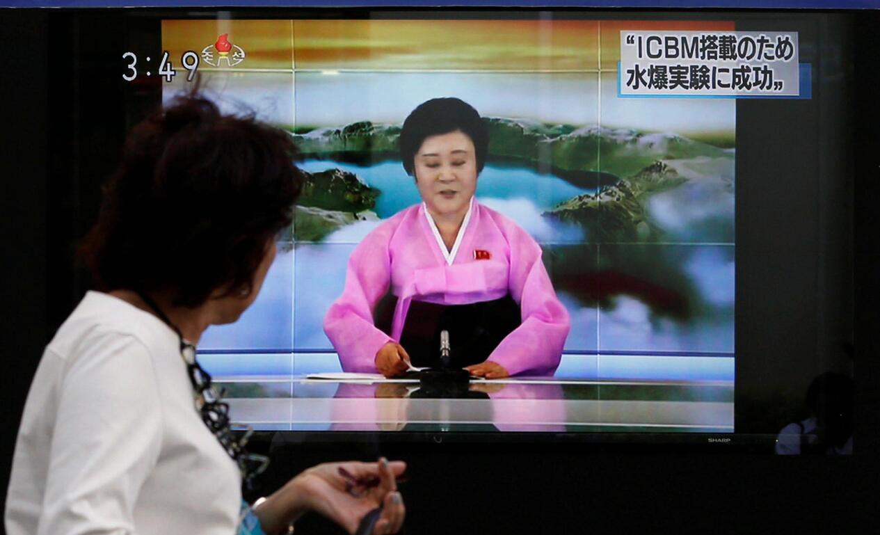 朝鮮中央電視台女主播李春姬直播報道,證實成功測試氫彈。路透社