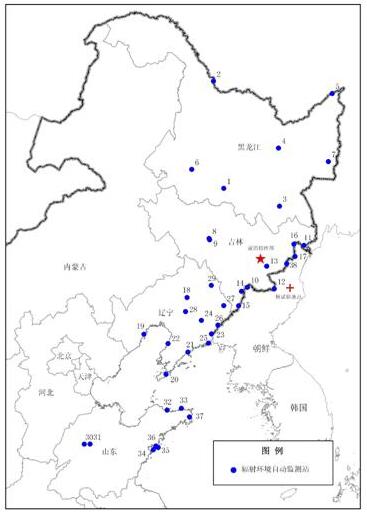 监测结果表明,本次朝鲜核试验目前未对我国环境和公众造成影响。东北边境及周边地区监测布点示意图见图1。监测数据见表1。