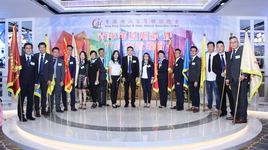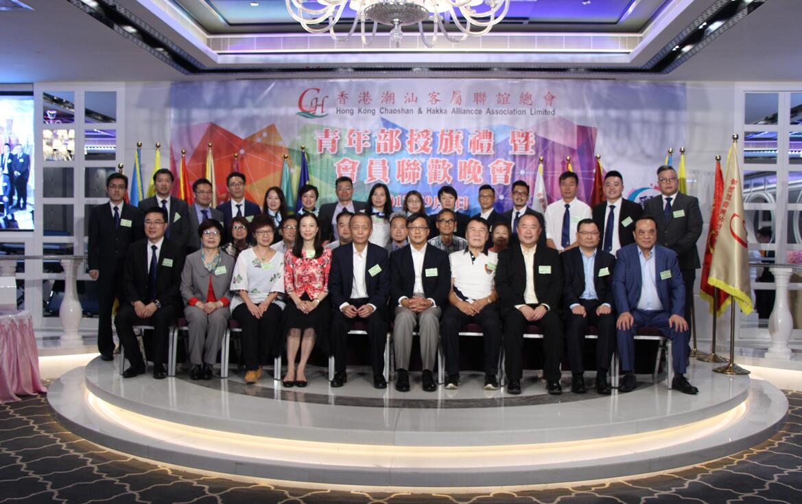 香港潮汕客屬聯誼總會青年部授旗禮暨會員聯歡晚會上,宾主合照。