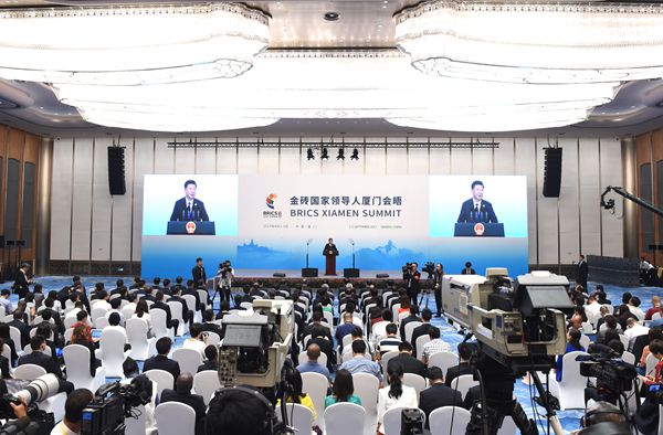 昨天,金砖国家领导人厦门会晤圆满闭幕。我们五国领导人围绕着“深化金砖伙伴关系,开辟更加光明未来”的主题,就当前国际形势、全球治理、金砖合作等深入地交换了看法。