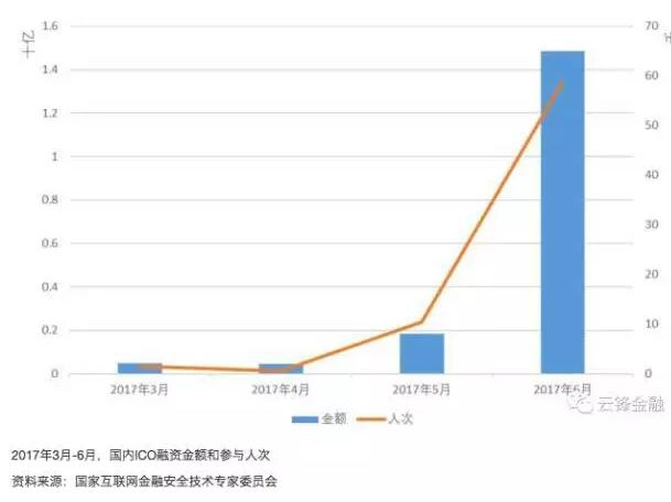 根据国家互联网金融风险分析技术平台的《2017上半年国内ICO发展情况报告》,面向国内提供ICO服务的相关平台43家,完成的ICO项目累计融资折合人民币总计26.16亿元,累计参与人次达10.5万。从抽样数据看,男性占八成;用户年龄主要分布在20-49岁之间。