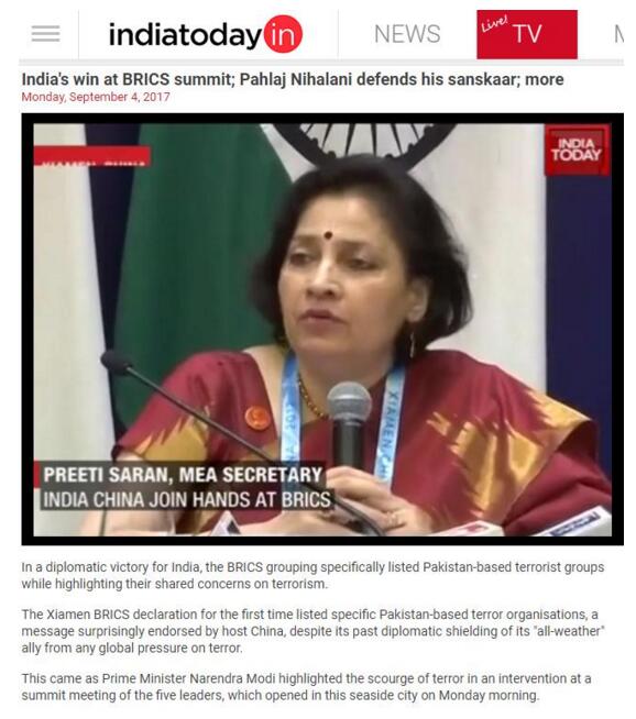 印度主流杂志《今日印度》网站标题:印度赢下了金砖峰会