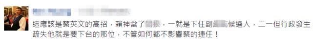 可能有人会问,赖清德从市长变成台湾行政机关负责人,明明是升职,为什么还一副苦瓜脸呢?这里头的门道,热衷政治的台湾网友们早就看粗了玄机:
